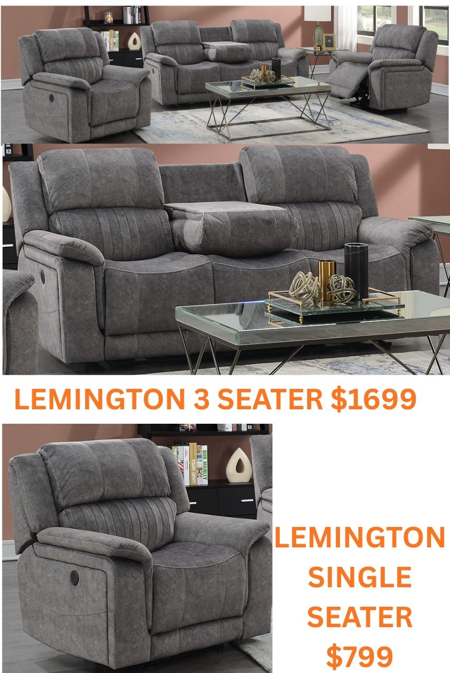 lemington 3+1+1 recliner lounge suite FABRIC