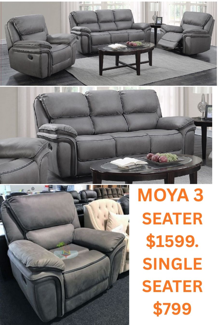 moya 3+1+1 recliner lounge suite FABRIC