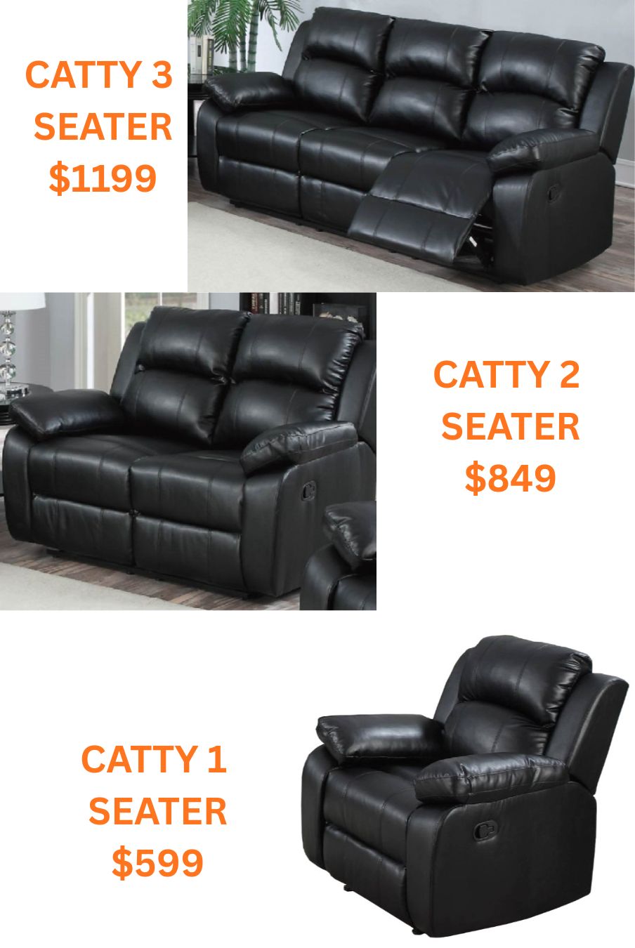 catty 3+2+1 recliner lounge suite PU LEATHER
