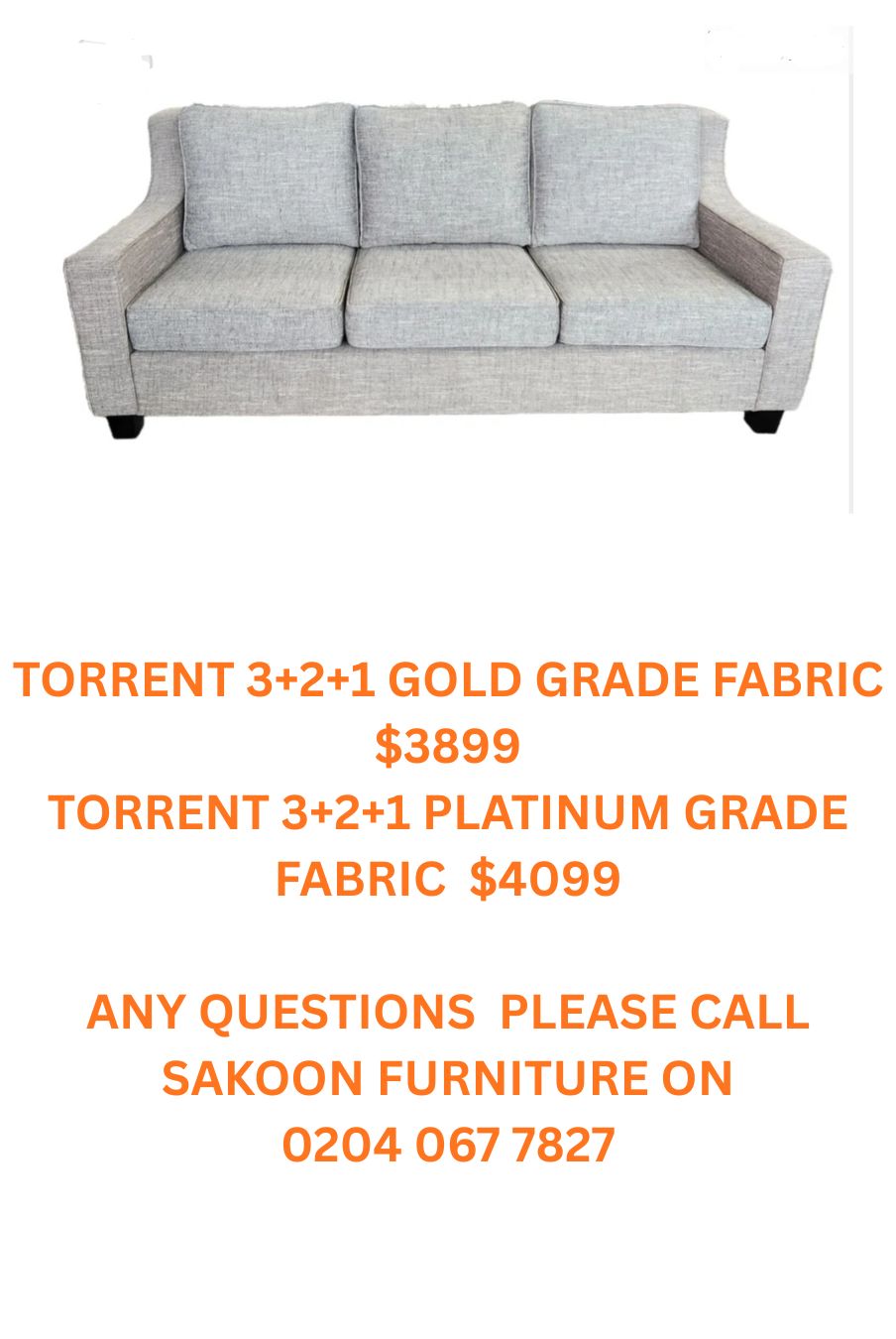 TORRENT 3+2+1 SILVER GRADE FABRIC