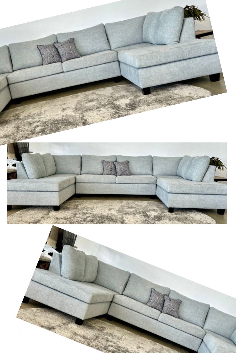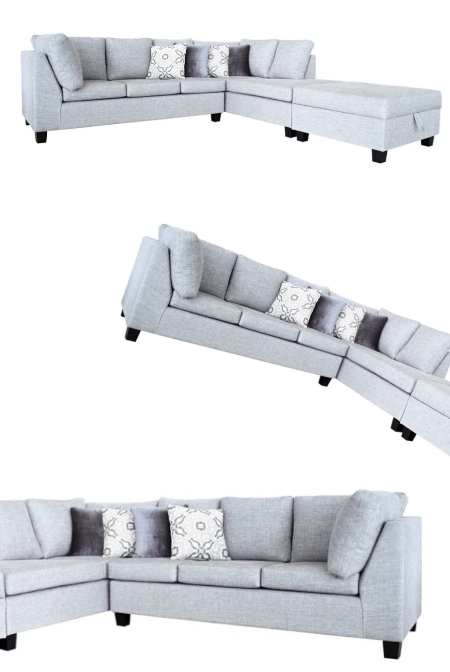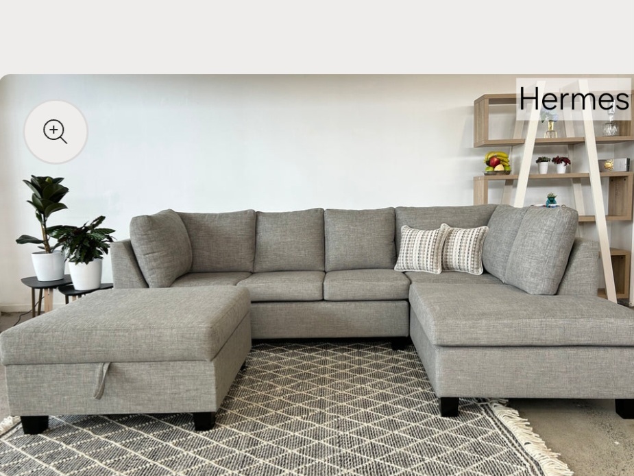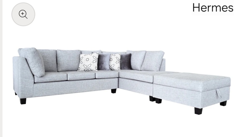 hermes 3 seater chaise + ottoman silver grade