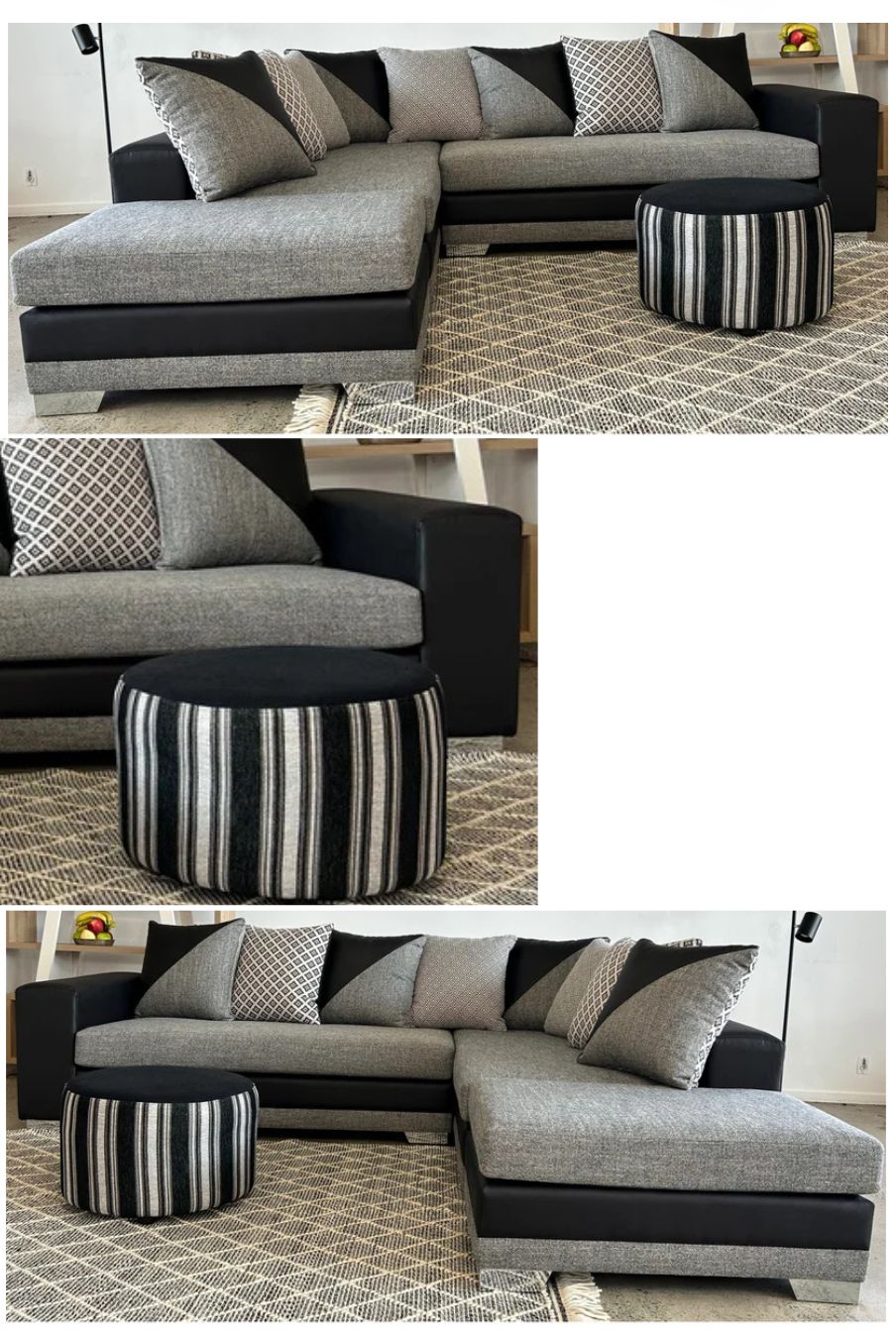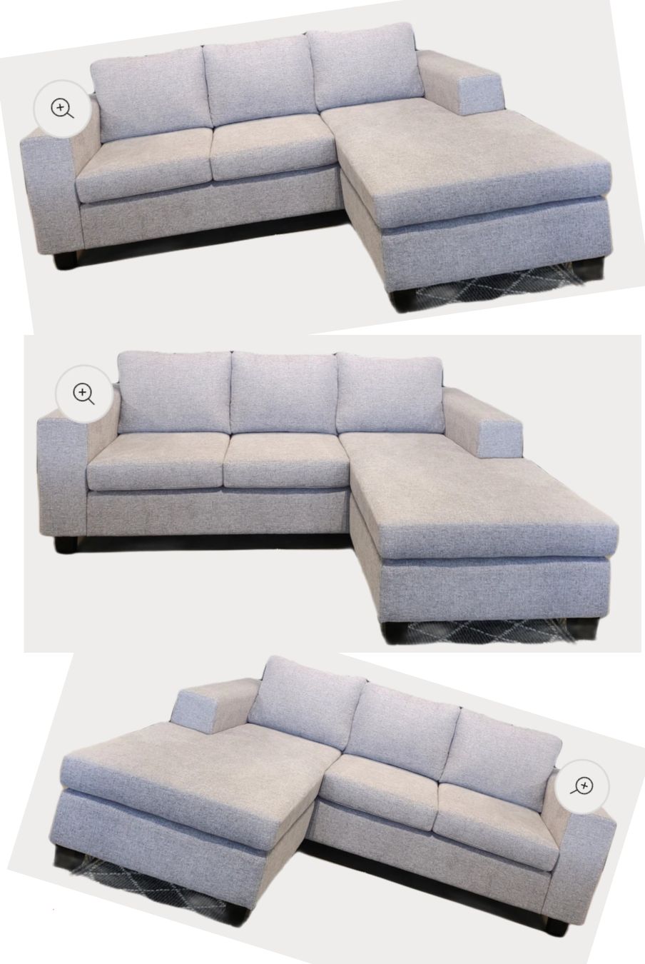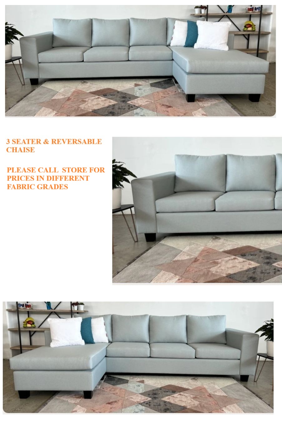 GALLON 3 SEATER REVERSABLE CHAISE SILVER GRADE FABRIC